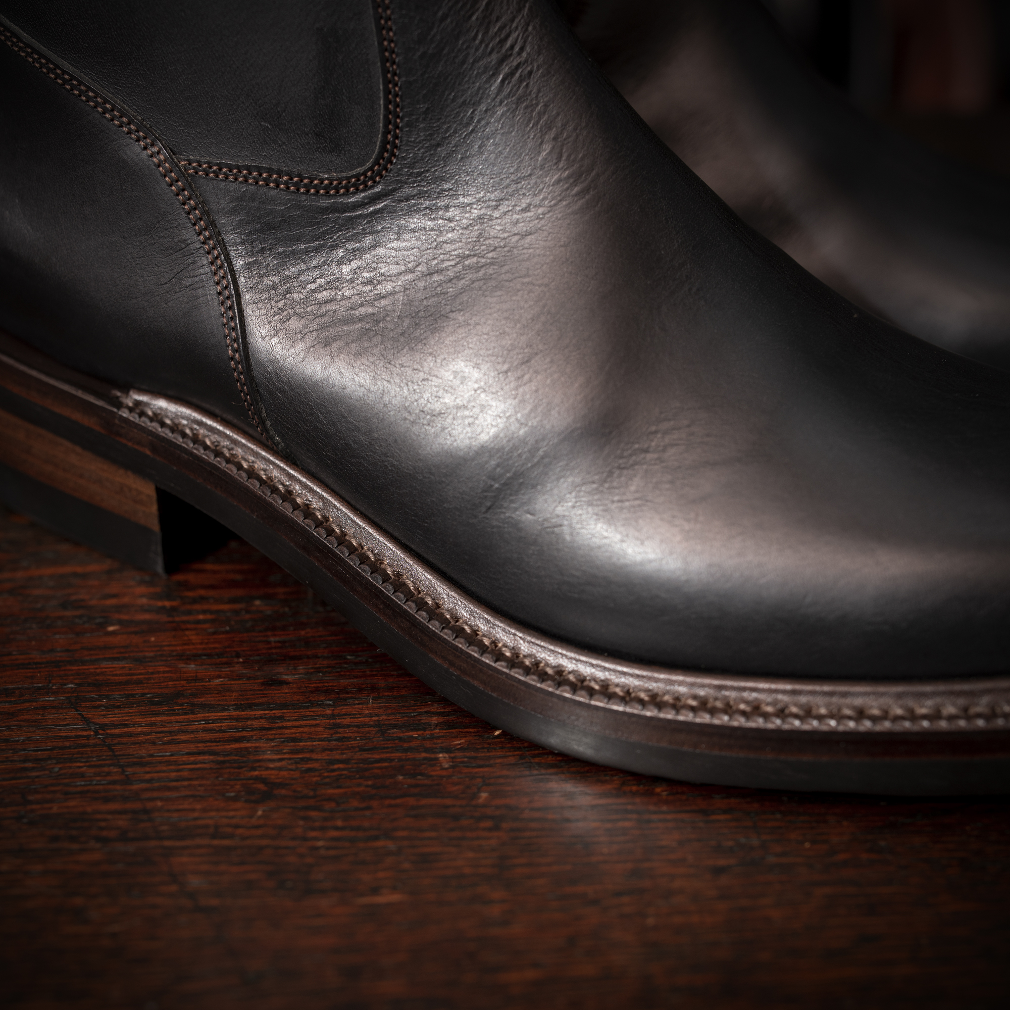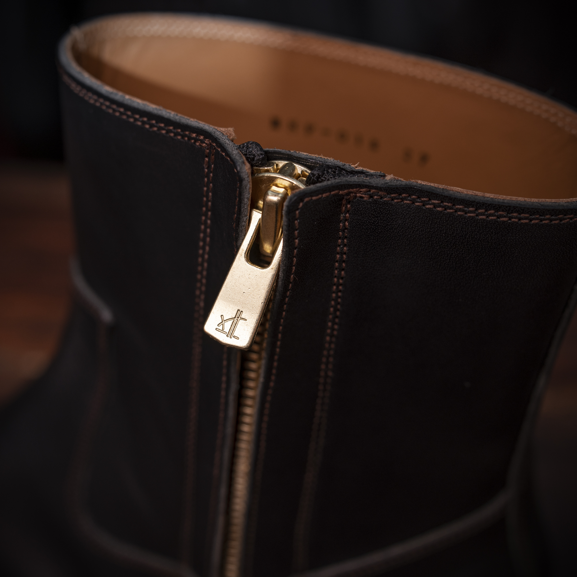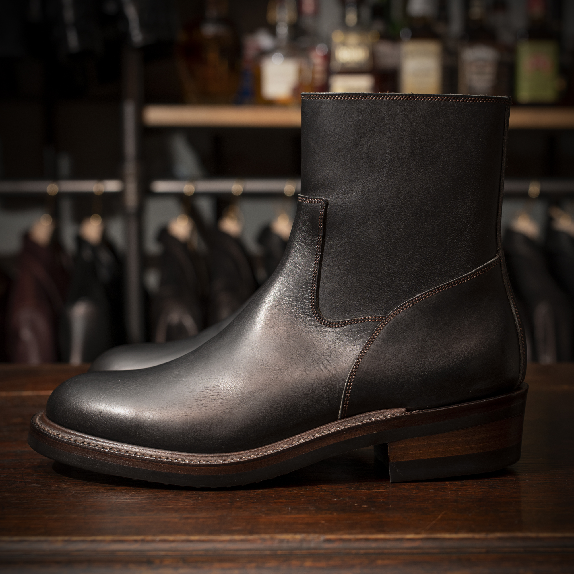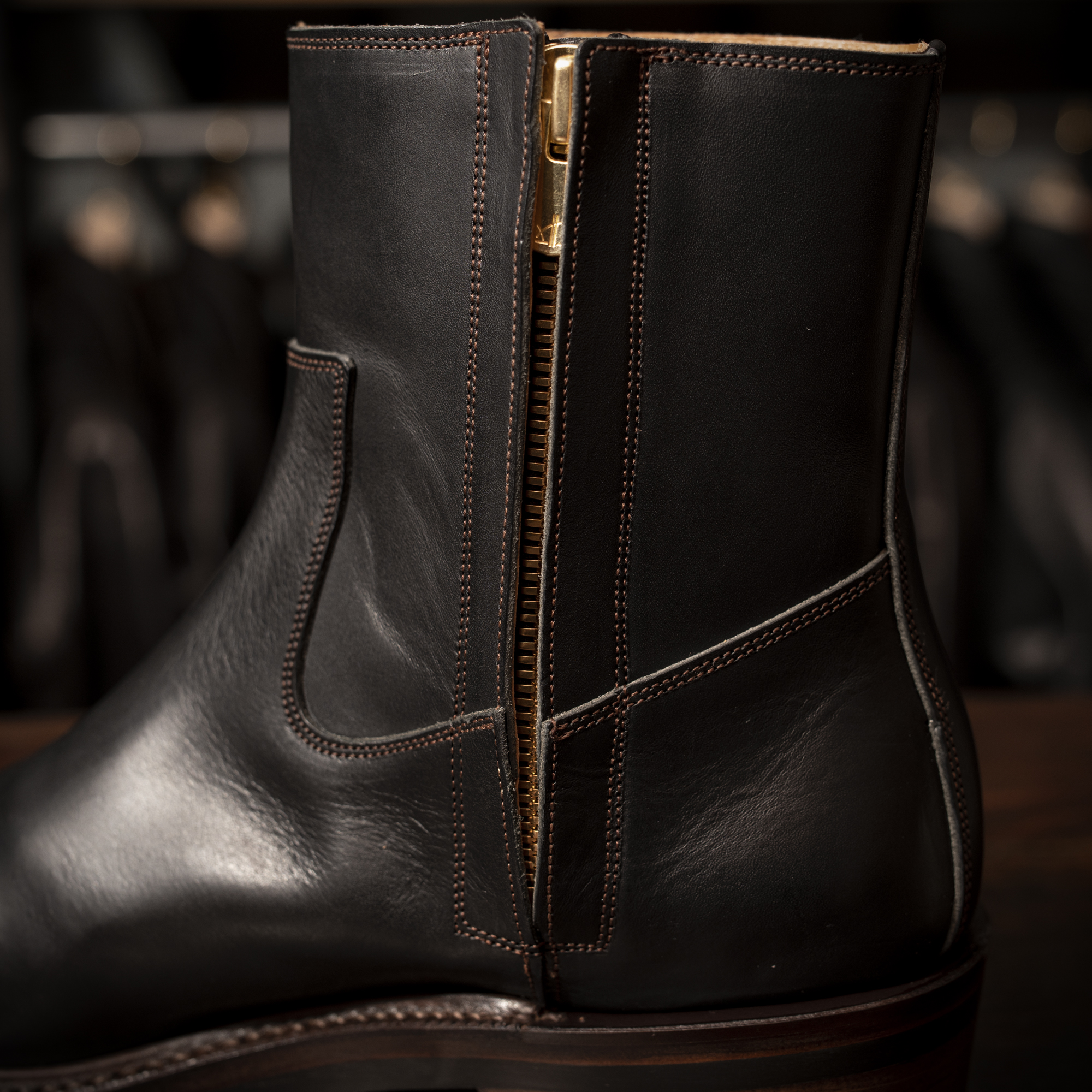 シャフト高や履き口の寸法など細部にわたり理想を数値化し、構築した設計は武骨さと品の良さを絶妙に両立。