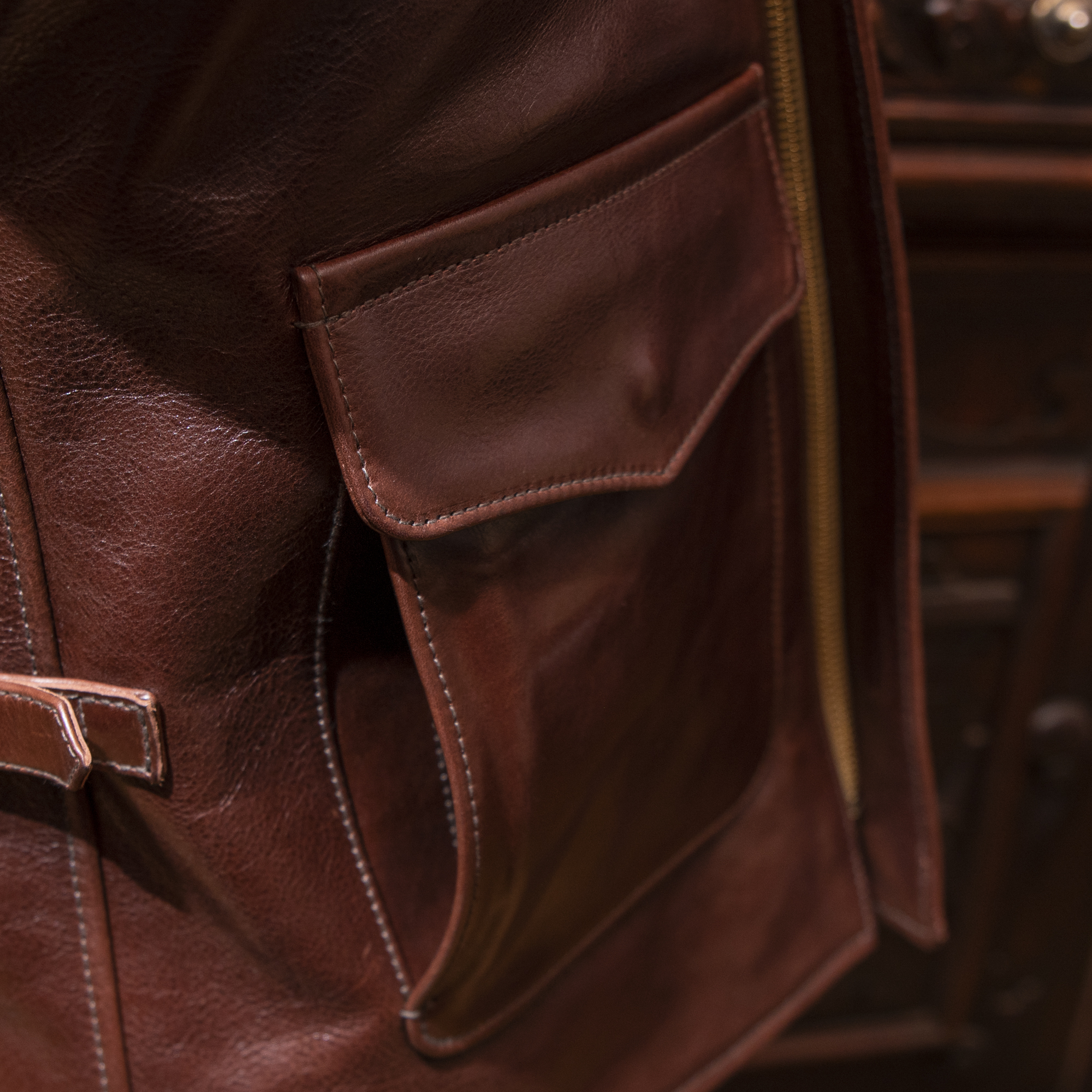 アームはスマートに見せながら可動域を確保し、襟はミリ単位で再設計。大型ポケットは強度と躍動感を両立させる縫製へ見直し、インナーポケットも装備。ADVENTURER -χ-はライディング専用パターンではありませんが、刷新された構造により驚くほど動きやすい。映画の記憶を出発点に、レザージャケットの理想を突き詰めた一着が、あなたの日常に寄り添い“盛装”へ育っていくでしょう。