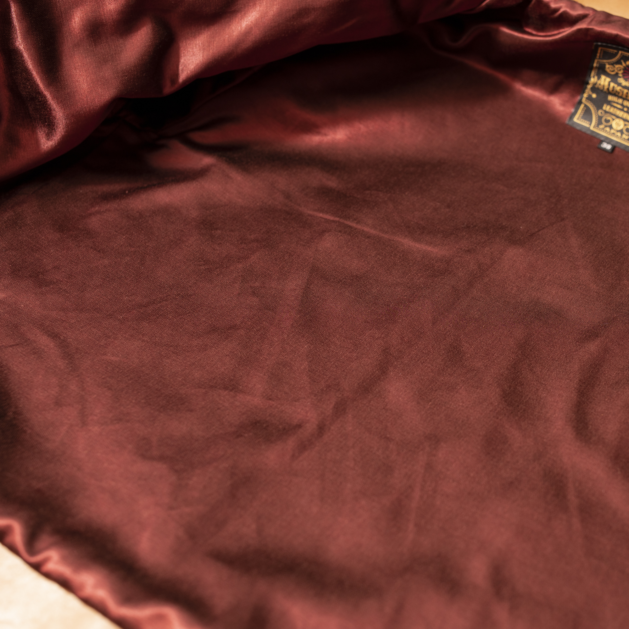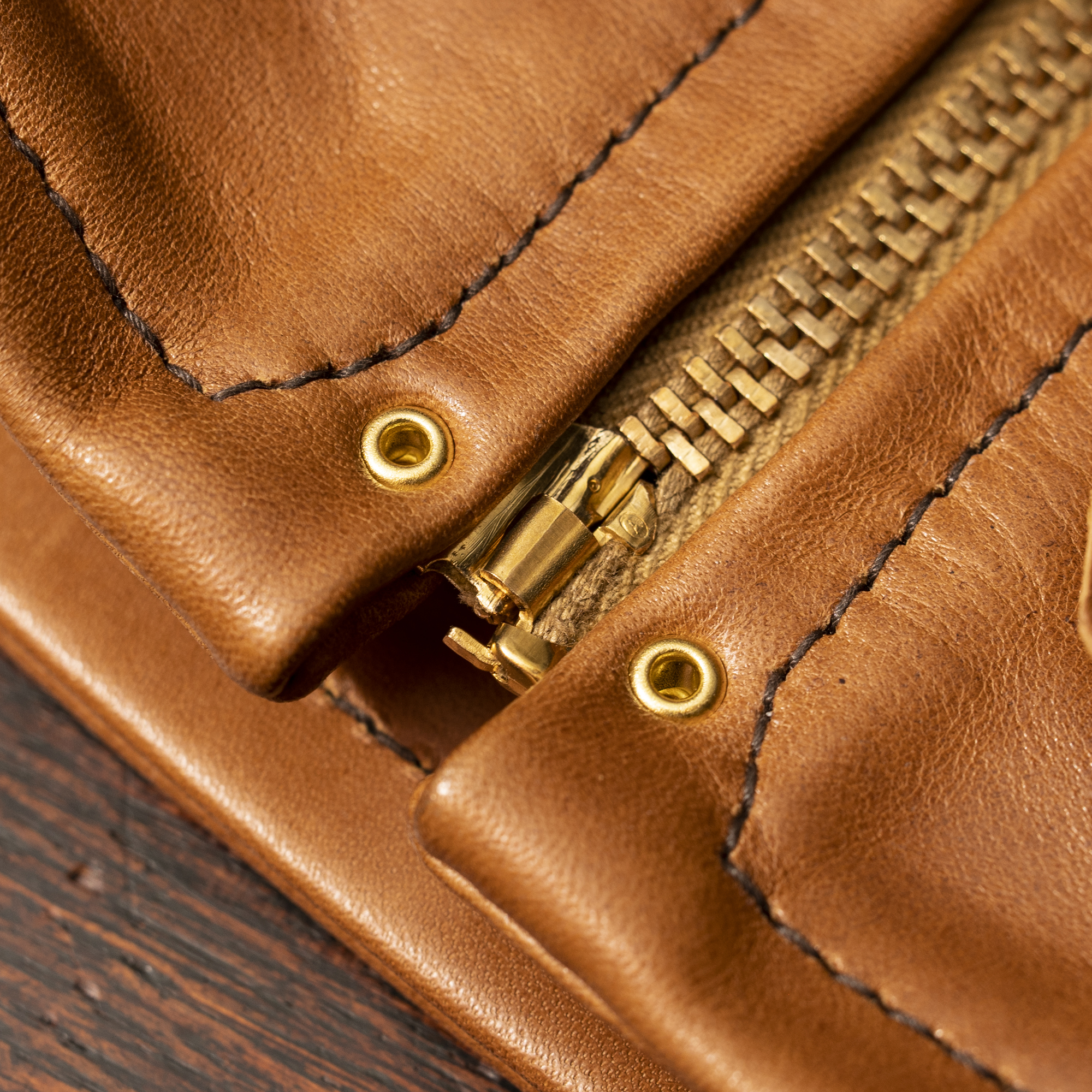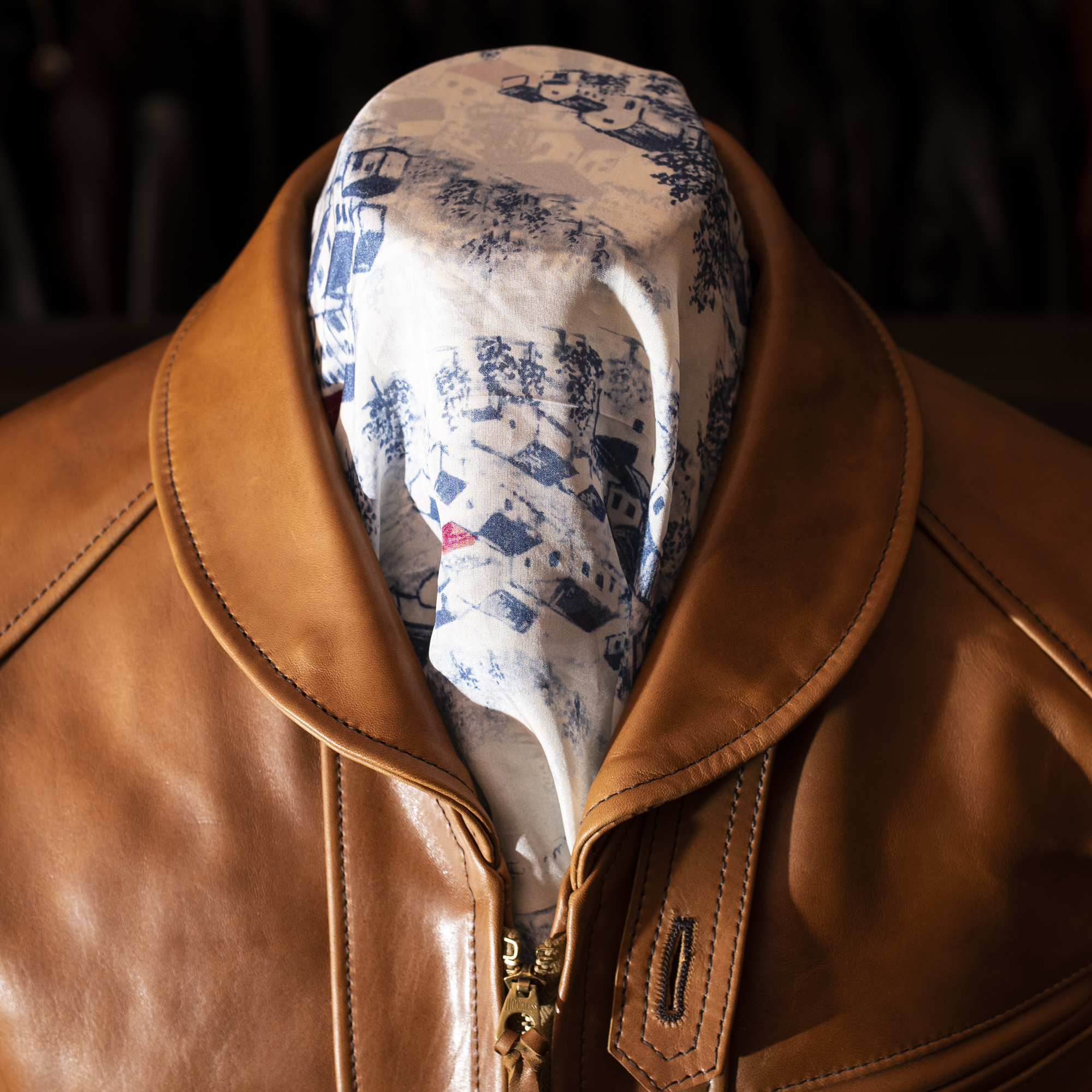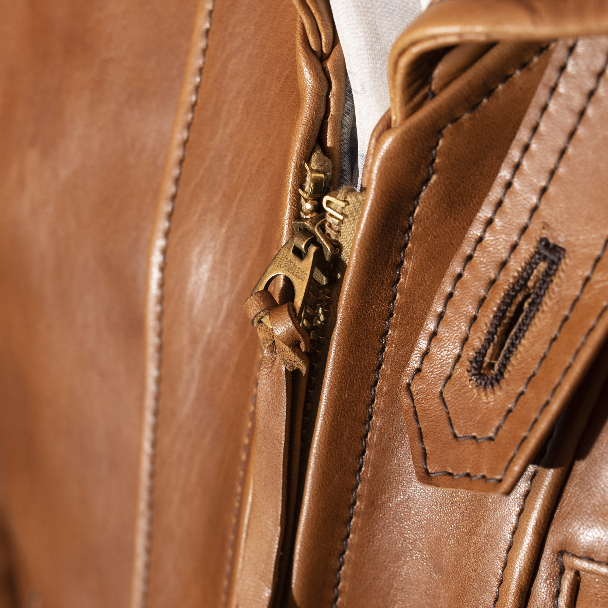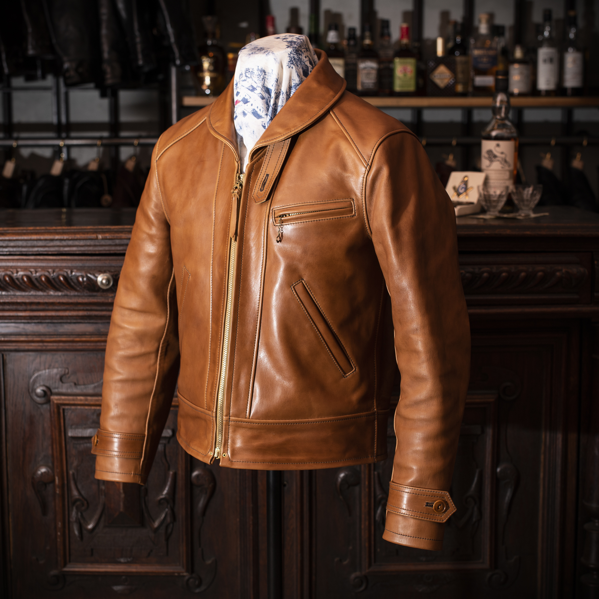 1930年代に見られるアヴィエイター/コサックと呼ばれるスポーツジャケットの系譜を踏まえつつ、当時このジャンルでは少数派だったフロントジッパー仕様の個体に着想を得て、MUSHMANS Leatherの観点で再構築しています。